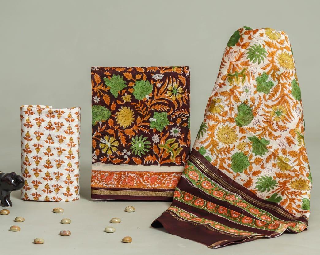 Sanganeri Hand Print Chanderi Silk Suit Set
