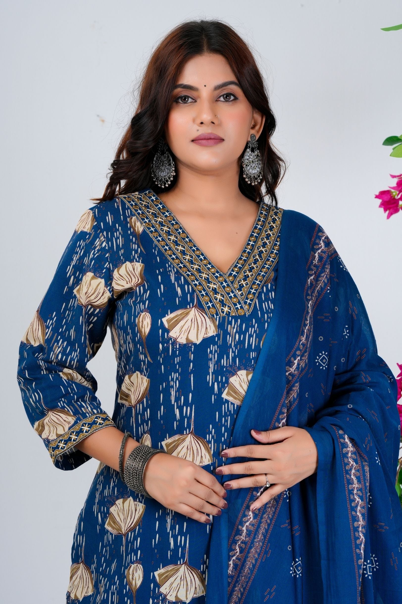 Floral Printed Pure Cotton Kurta With Trousers & Dupatta