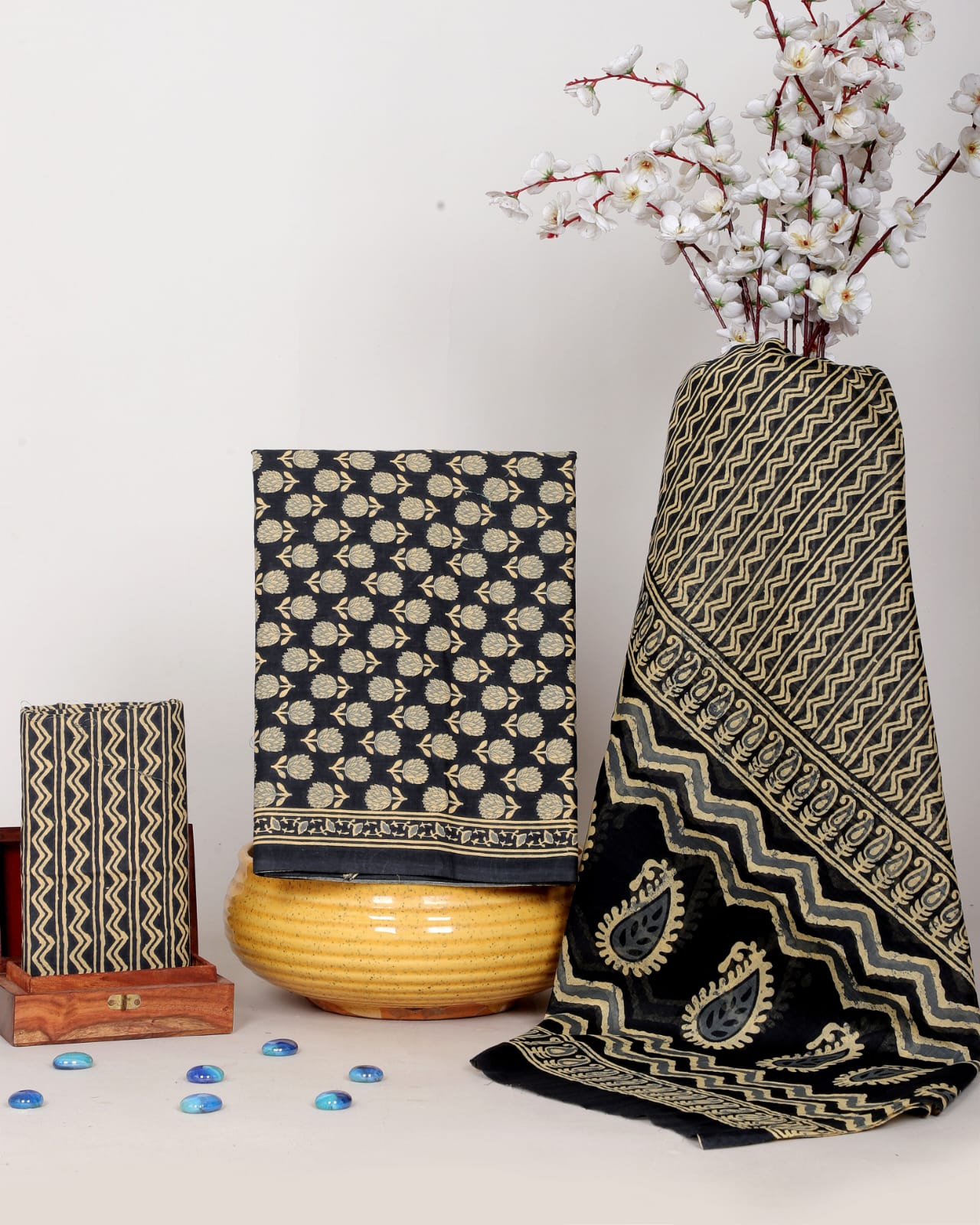 Bagru Print Organic Cotton Suit Set With Mulmul Dupatta