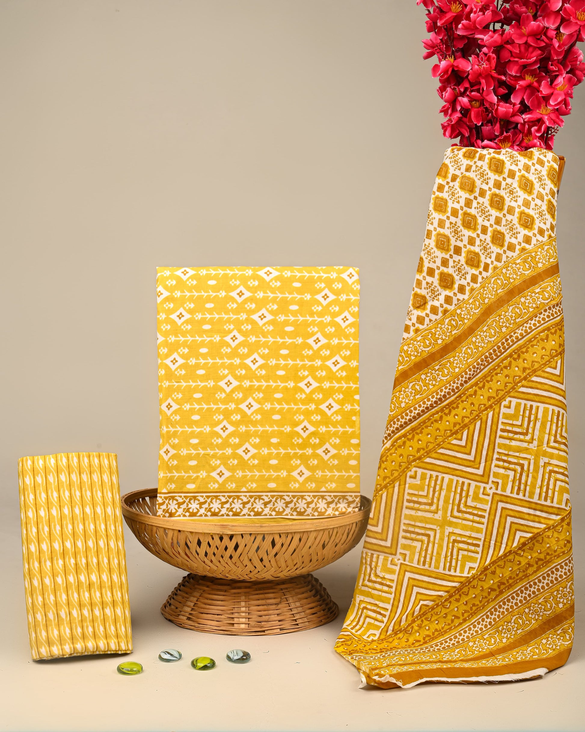 New Hand Block Printed Cotton Suit With Mulmul Dupatta