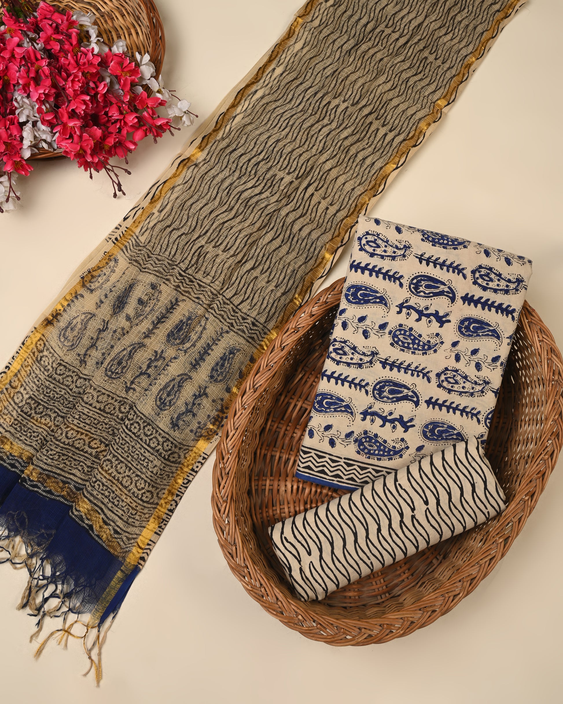 Premium Hand Block Printed Cotton Suit With Kota Doria Dupatta